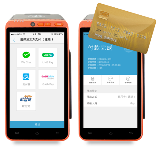 支援信用卡刷卡、各種第三方支付,相關認證齊全,只要一台機器就能完成多種金流支付,再也不需要滿桌的刷卡機、支付機。