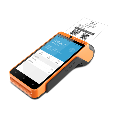 手持式智慧裝置,整合多樣化硬體設備,包含刷卡機與熱感列印機,支援電子發票列印、商品明細列印、信用卡簽單列印、優惠條碼列印。