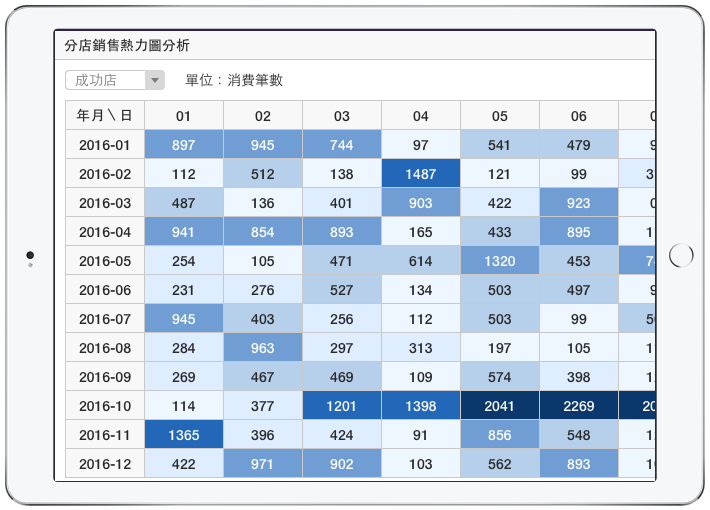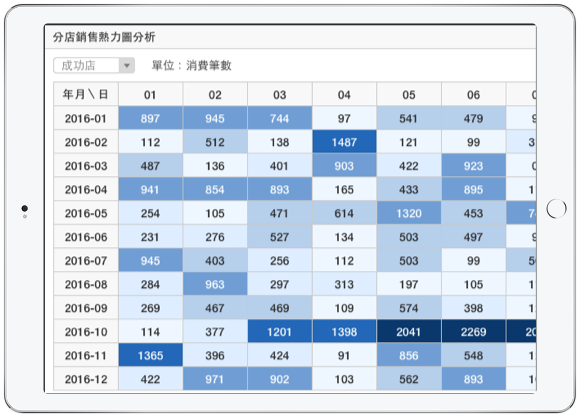 視覺化的銷售熱力圖表,讓您一眼看出業績高漲的熱門日期區段,協助您比對行銷檔期效益。